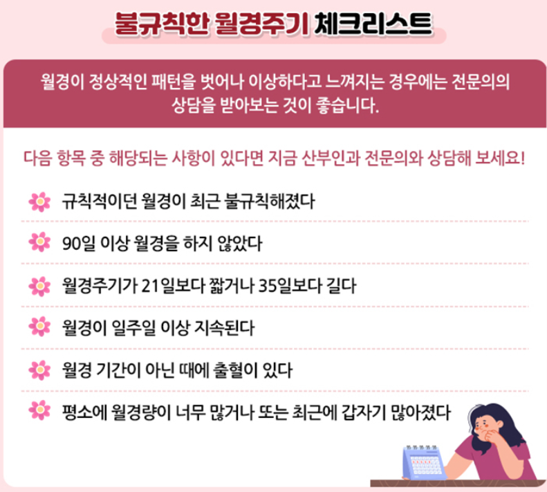 몇 가지 대표적인 증상들이 반복되거나 장기적으로 지속된다면 반드시 산부인과 전문의의 상담을 받아보는 것이 좋습니다.